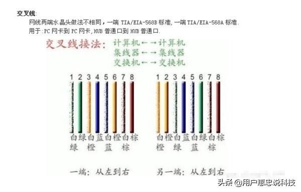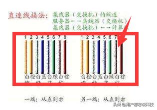 题主说的。不知道是不是说网线水晶头里面的线序如何排列的。网线有两种排列方式。一种直通线。一种交叉线。