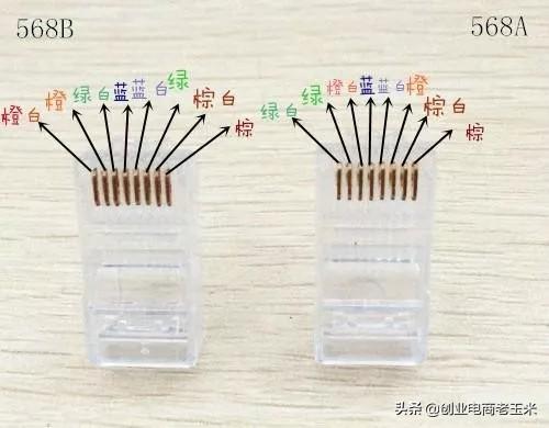 568B标准:橙白。橙。绿白。蓝。蓝白。绿。棕白。棕