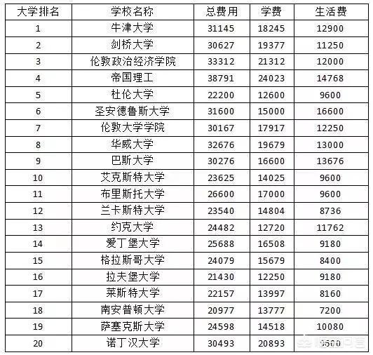 给大家盘点一下英国留学不同大学的留学学费。以及包含地区的生活费。
