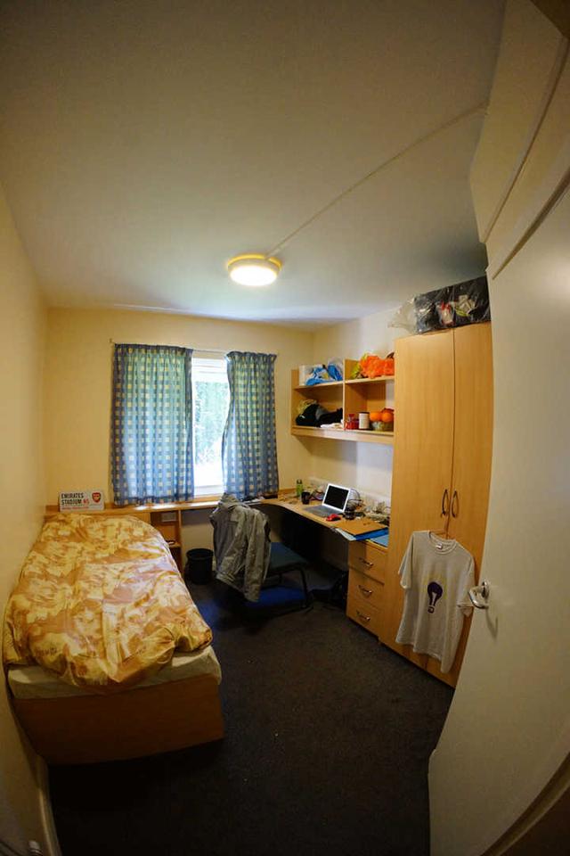 每栋房子三层楼。六个flat。我住的flat是八间房全部住满。每间房有独立卫浴。大家公用一个大厨房。