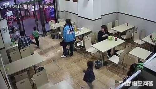 孩子并不是在店中乱跑的熊孩子。而是进来帮拿碗筷的。