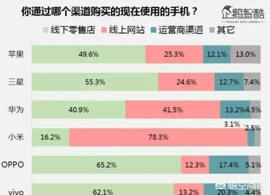 我们从企鹅智酷《2017中国手机消费报告:一个重要拐点来临》中可以看出。每个品牌的消费者都会线上和线下等多个渠道去购买手机。