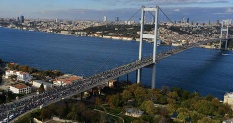 伊斯坦布尔是世界上唯一一座横跨欧亚两大洲的城市。参加伊斯坦布尔马拉松(原欧亚大陆马拉松)就可以体验到跑着横跨亚欧的美妙。每年秋季。跑者从亚洲区起跑。几万选手穿过博斯普鲁斯海峡大桥。经过金角湾、索菲亚大教堂和蓝色清真寺等著名景点。到达欧洲区。这哪里是跑马?分明是一场让人心旷神怡的徒步旅行。