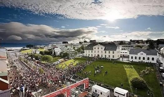 得益于北大西洋暖流的馈赠。冰岛这个气候风光与名字不尽相同的国家是让不少旅游爱好者魂牵梦绕的地方。首都雷克雅未克城市布局和谐。居民住房大多是两层小楼。风格各异。色彩斑斓。市内街道不宽。整个老城区街道经纬分明。透露着宁静优美的氛围。马拉松比赛时间正值冰岛全国性的活动“文化之夜”。冰岛人都会聚集到首都的街道上庆祝。这里多见冰川和火山、温泉。除了感受风土人情和冰岛的自然风光。跑者赛后还可以免费享受价格昂贵的地热温泉游泳一次。