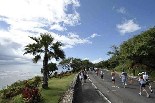 火奴鲁鲁是夏威夷州首府。华人习惯称之为檀香山。阳光、海滩、蔚蓝的天空与一望无际的海平面。这里原本就是度假胜地。在这样的风光中跑马是什么感觉不用说也能知晓一二。赛事近似环形的路线从阿拉莫阿那海滨公园开始。到卡皮欧拉尼公园结束。跑者会经过火奴鲁鲁最著名的几大景点。包括怀基基海滩、钻石头等。