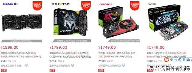 (有很多牌子的1660s。也都相差不多;主要推荐铭瑄吧)