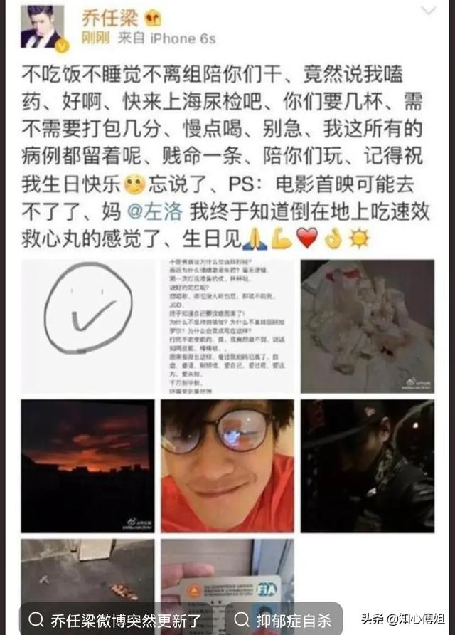 尤其是乔任梁。据说他死前就有抑郁症。有一次他在微博里看到他这样写道:不吃饭。不睡觉。不离组陪你们干。竟然说我磕药。………贱命一条。陪你们玩。记得祝我生日快乐。有人说乔任梁死时是没有胳膊的。到底是怎么死的?是自杀和他杀。和当年的李小龙之死有一拼。网络总会留下痕迹。乔任梁转眼已经去世5周年了。但是他秒删的微博还是在网络上能够搜到。这个微博读起来让人毛骨悚然。到底是被害妄想症?还是确实如电视剧中你乔森一样有人逼迫。圈外人是不清楚的。有各种版本的猜测充斥网络。斯人已逝。乔任梁的父母还坚强的生活在这个世上。看着一对老夫妻在网络上“用力”的吃着各种山珍海味。感觉不到他们吃的快乐。感到的只是让人心声有些脊背发凉。同时又让人心疼。不知道这五年之间。这老两口有没有走出悲伤。有没有放下过去。也许是换一种方式纪念自己的儿子。但是就是这样的老两口。也是避不开网络的暴力。不知道乔任梁去世后。他签的合约是不是还要遭受到巨额的赔偿。老两口又是为什么要这么拼命的作美食主播呢?