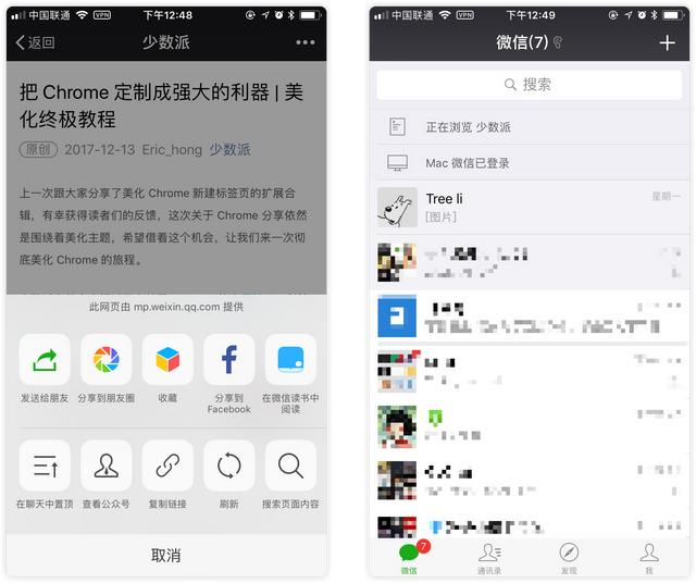除此之外。微信也可以利用「置顶」进行多任务操作。比如你正在浏览公众号里某一篇非常重要的文章。这个时候突然有一个客户给你发来了消息。你需要马上给他回复。一般人可能就直接退出文章。但这样下次再找文章就多了很多不必要的麻烦。我们可以在右上角点击更多按钮。选择「在聊天中置顶」。这样就可以直接从消息列表进入文章内。并且还为你保留了上次浏览到的位置。