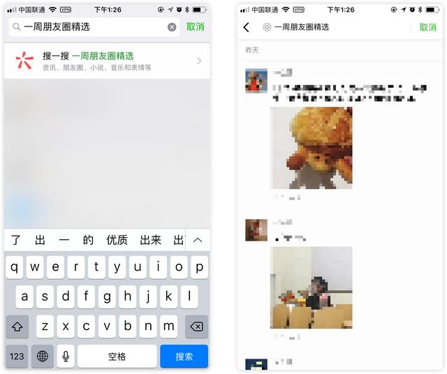 其实对于一个不是经常刷朋友圈的人来说。无时无刻不在更新的朋友圈对他来说是一个庞大的信息流。而微信也给用户提供了一个友好的通道。那就是一周朋友圈精选。你可在微信的搜索框中输入「一周朋友圈精选」即可找到进入的选项。微信会根据相关参数来为你筛选出这一周比较值得浏览的朋友圈。方便你更「精简」的社交。
