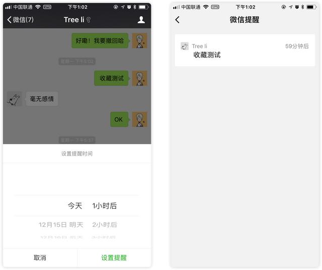 我们前面提到的笔记作为清单或者 GTD。为了完成时更方便勾选任务。也可以将笔记置顶。其实每个时间我们也可以为他们设置提醒。你可以任意长按一则消息。在弹出选项后选择「提醒」。即可设定时间给你发送提示消息。但是微信提醒时间精度只能是小时。只能为你提供一个大致的提醒。