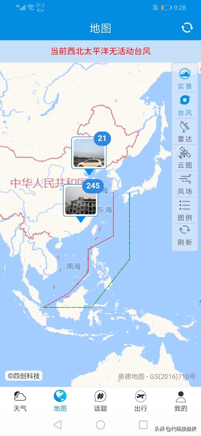 其中的地图模块除了可以查询天气。还可以查实时查询台风的动态。