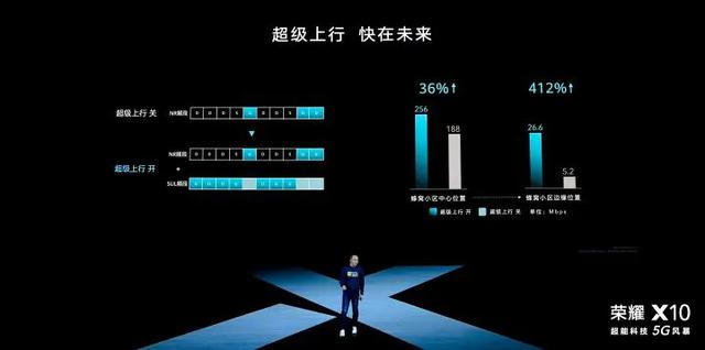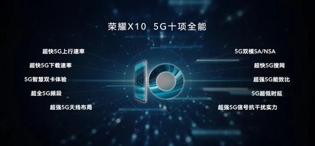 荣耀 X10 采⽤麒麟 990同款5G Modem,拥有旗舰级5G体验。现⽹实测中。荣耀X10下载速度⾼达 1003Mbps;同时还带来5G超级上⾏技术。这在华为内部被称为“2019⼗⼤发明”之⼀。