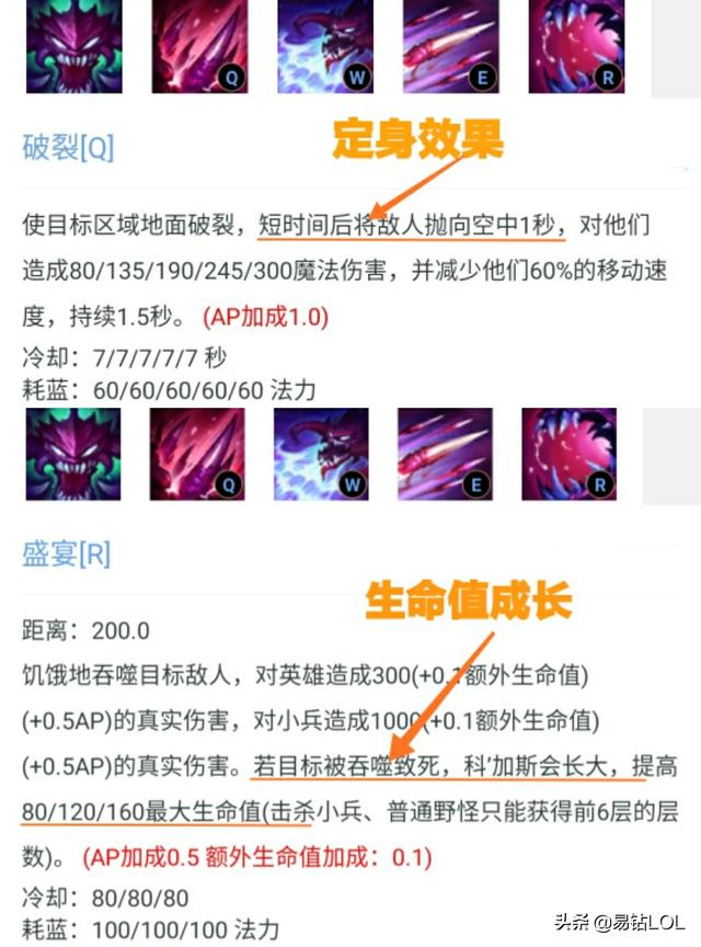 其次。除了特定的触发条件以外。斑比的熔渣、熔渣巨人及日炎斗篷新增伤害的加成方式是以携带者所获得的额外生命值来计算。在具有可定身的控制效果的基础上。同时又具备生命值成长属性的英雄无疑是最完美的契合。可以说是量身定做的一样。比如: 虚空恐惧-科加斯(大招的吞噬效果)、迷失之牙-纳尔(变身后的生命值加成)、荒漠屠夫-雷克顿(开大后的生命值加成)、亡灵战神-赛恩(W技能被动的生命值成长)等。