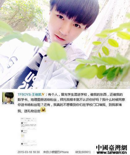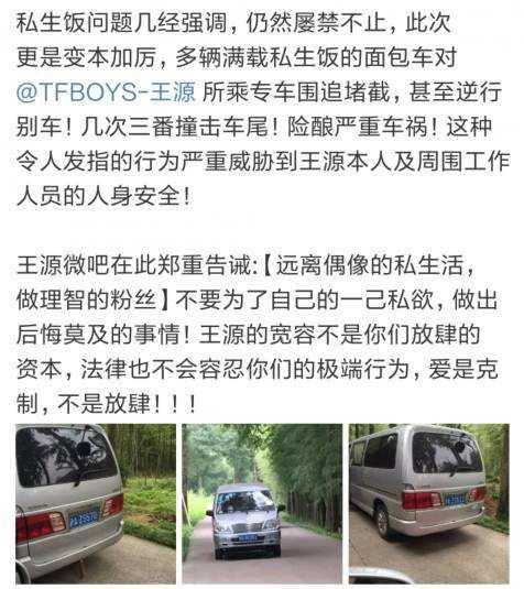 就如tfboys。他们的私生饭也是极度疯狂的。小凯高考时闯入校园。有的粉丝甚至把小凯吃过的勺子放在嘴里;源儿每天放学都像跑马拉松;有的私生饭还跑到千玺的老家去打扰他的亲人。私生饭们甚至在他们车上装跟踪器。偷拍他们排练的照片。发给他人。暴露信息。还有的想偷拍他们上厕所。令人发呕。