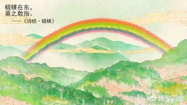 可见。在古人看来。彩虹不仅不能用手去指它(否则不吉利)。而且形象也不太好。古人把虹想象成了一条雌雄同体的“双头虫”或“双头蛇”(现在你知道。为什么“虹”是虫字旁了吧),并以之作比兴。来讽刺一个“失德”的女子与男子私奔。