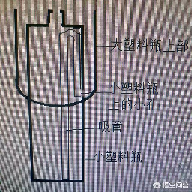材料:大、小塑料瓶各一个。吸管一根。万能胶。电烙铁。剪刀。原理:公道杯是虹吸现象应用的一个成功范例。弯曲的吸管就是虹吸管