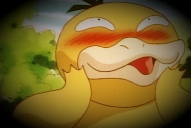 在众多的宝可梦中。如果头痛剧烈的可达鸭认真战斗的话。可以说几乎是无敌的存在。光是“定身法”就让对手定住无法动弹。其次再用“念力”更是可以随意攻击对手。让对手陷入束手无策的境地。但是可达鸭呆头呆脑的个性。使其在关键时刻总是掉链子。该待在精灵球的时候总是自己跑出来。该攻击对手的时候总是头痛。不该上场的时候总是跑第一。让主人小霞硬是操碎了心。