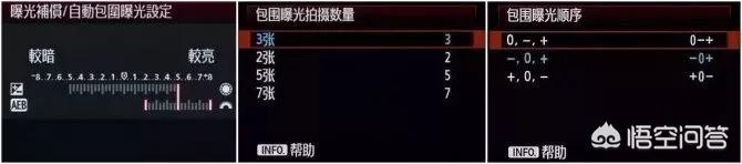 所谓包围曝光就是指相机自动拍摄一张系统认为曝光正常的照片。然后再拍一张曝光不足和曝光过度的照片。至于什么时候拍曝光正常的照片、什么时候拍欠曝和过曝的照片是可以调节的。