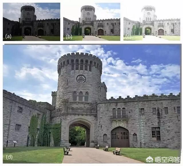 所以HDR就是拍一个场景。拍摄几张不同曝光的照片。然后把画面的亮部、暗部都照顾到。最终曝光正常的取中间调(细节最丰富)、曝光不足的照片取高光部分(细节最丰富)、曝光过度的照片取低光部分(细节最丰富)。最终合成一张曝光正常的照片。