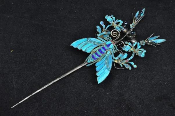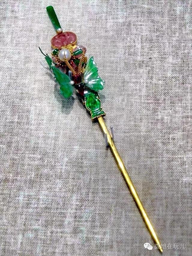 对于古代的女性来说。头上的簪子还有修饰的功能。一般就是在簪头上做文章。比如有的簪头会镶嵌宝石。有的在簪头做出花样。比较常见的是做成一个寿字。或者凤头、蝉头等等。有的簪身是银质的。簪头是金的。也就是所谓的“金头银脚”。