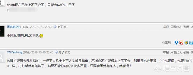 看到FPX战队全员改ID之后。有网友直接评价到:FPX战队真的是堪称LPL的艺术队;还有网友直接调侃到:Doinb现在已经上不了分了。只能当LWX的儿子了;也有网友指出了欧服排位的一个环节:欧服打架就和大乱斗一样。不管崩的多严重。剑魔就要刚。只要参加打团就能混到经济。