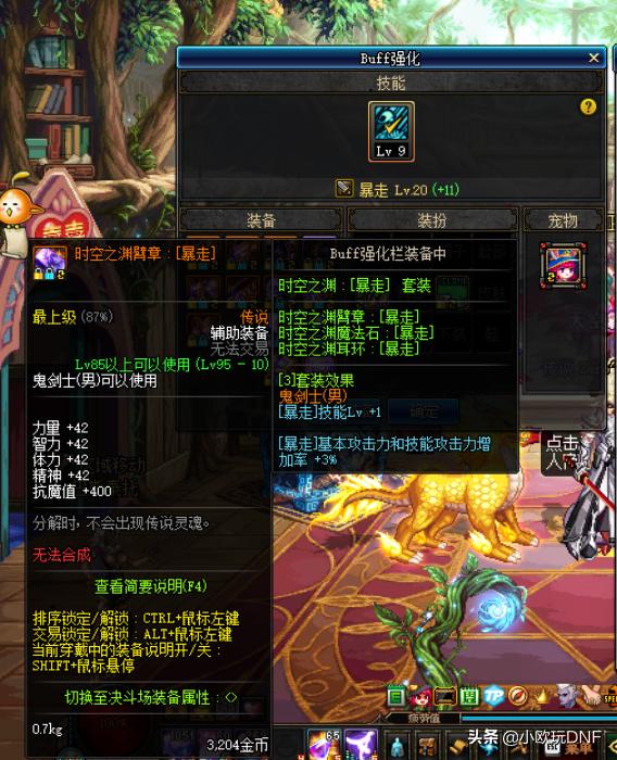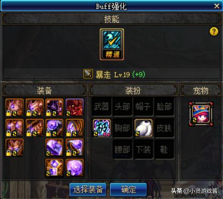对于人口基数最大的红眼来说。要达成完美Buff暴走换装。需要“深渊之鳞防具+首饰+胜武器”构成9件套。特殊装备选择“时空之渊”套。再堆7级暴走Buff。这样可以达成红眼暴走的完美Buff提升数据116%。这当中传说装备都比较容易获取。但是堆7级Buff。就需要氪金获取了。现版本常见的堆Buff的方式。肩膀/腰带/鞋子技能宝珠+3。时装+1。宠物+1。称号+1/+2/+3。光环+1。白金徽章+2。每一样的花费都价值不菲。