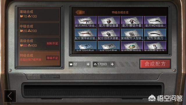 个人建议:以七级庄园为最终目标。把配方留在这个地方。前期猥琐发育。保存资源。优选买最便宜最实惠的枪械和护甲。还得要猥琐发育。后期七级全力发挥合成AK47、M24狙击枪等。这些终极武器肯定需要更多的配方和改造点数。即使前期卖力合成配方。也有可能合不出好东西。那么最值得拼运气的地方当然就是庄园七级以后的东西啦!(营地喜欢打架的多少钱都不够花!)
