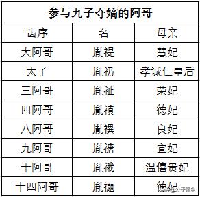 总的来说。相对于八阿哥允禩是谋略。是”八阿哥党”核心。九阿哥允禟善于经商。在”八阿哥党”中。可以提供财政支持。十四阿哥胤禵擅长带兵。是武装力量的保证。而胤䄉呢?作用近似打酱油。也因为这个得以保全性命。
