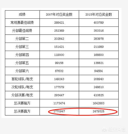 15年与07年总决赛的奖励输赢方各不相同。且奖金还是很可观。