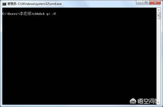 如图示。在DOS窗口输入检测命令。这里假设SD卡所在盘符为 G 盘。