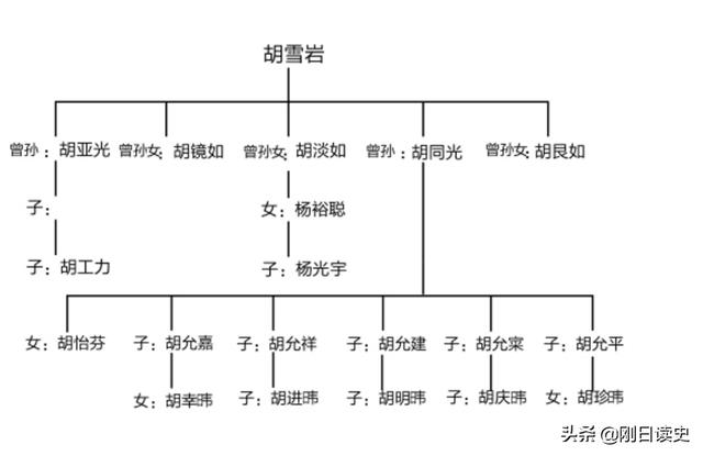 参考:《胡雪岩后人:往事何堪》、《胡氏宗亲网·胡雪岩直系后人在上海》