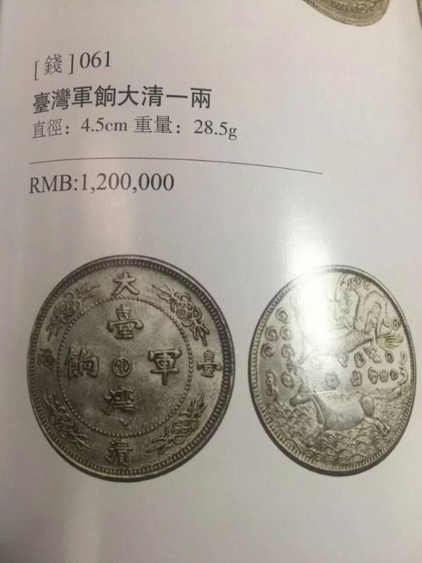 2018年苏富比在新加坡的拍卖会上。一枚大清台湾军饷银元以980万人民币成交。此银币乃清政府在大陆管办钱局铸造之后。按照计划拨付给台湾军队的军饷。后期经历多次回炉销毁。有少量流入大陆内地。作为近代银元十大珍之首其精湛的工艺与收藏价值一直为世人惊叹。目前存世量极少。