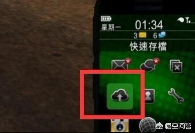 利用我们的手机。我们按↑方向键调出手机。然后移动到最左列的中间一个。像云一样的东西。出现这个页面我们就能够选择是覆盖当前存档。或者新建一个存档。