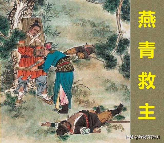 救下了卢俊义。燕青背着主人逃命。到了一个村子里。燕青为找下饭菜。便拿着弩子去射虫蚁。没想到。村里的社长告密。一两百个公人又将卢员外抢了去。燕小乙无奈。只得往梁山报信。