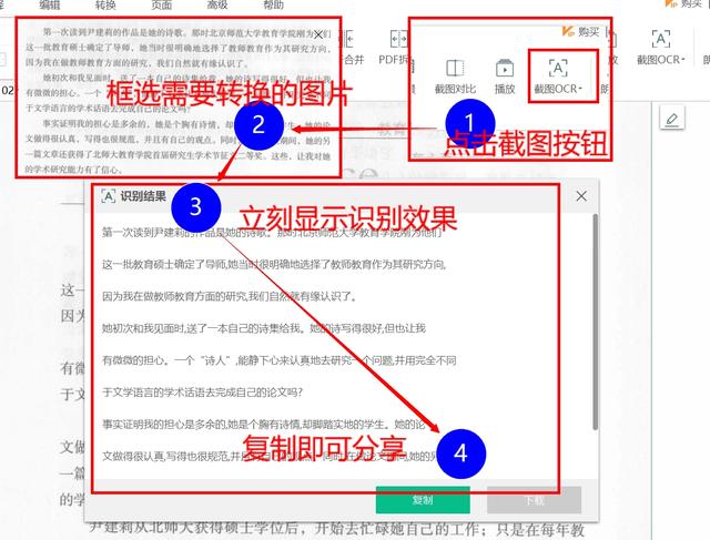 PDF截图即扫描:内置高效OCR识别。无需天若等辅助软件