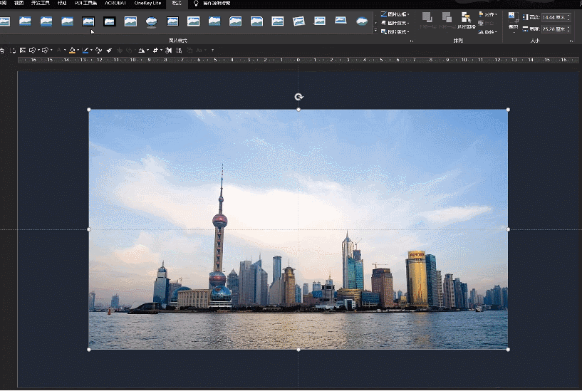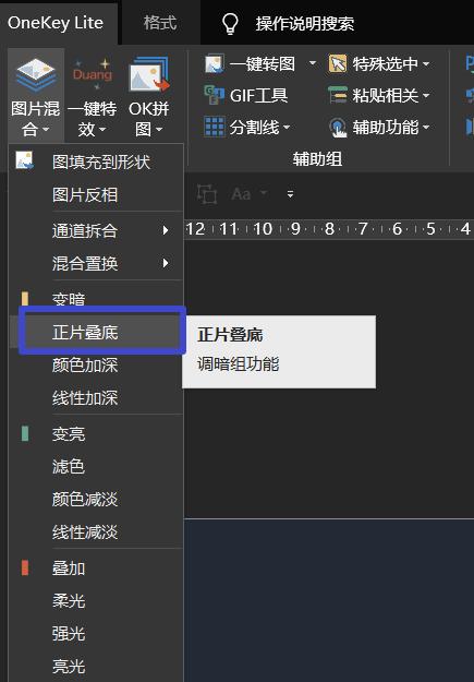 第三步。选中图片和形状。在 OneKey 插件的图片混合选项下。点击「正片叠底」即可。