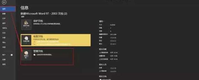 ② 点击文件功能选项卡。选择信息。在管理文档下。可以查看自动恢复的未保存的文件