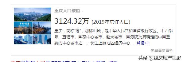 如图。在去年2019年的时候。重庆的常住人口就达到了3124.32万人次。