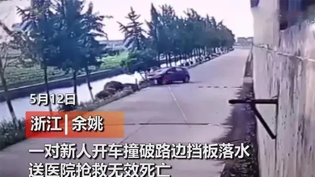 悲剧了!5月17日。浙江宁波余姚市泗门镇医院急诊送来一对男女。根据监控录像显示。其实路面很宽。男的开车不知为什么突然撞破路边挡板掉入河里。车上俩人送医院抢救无效。双双淹死。可怜的情侣。婚礼还没举行就变丧礼了。