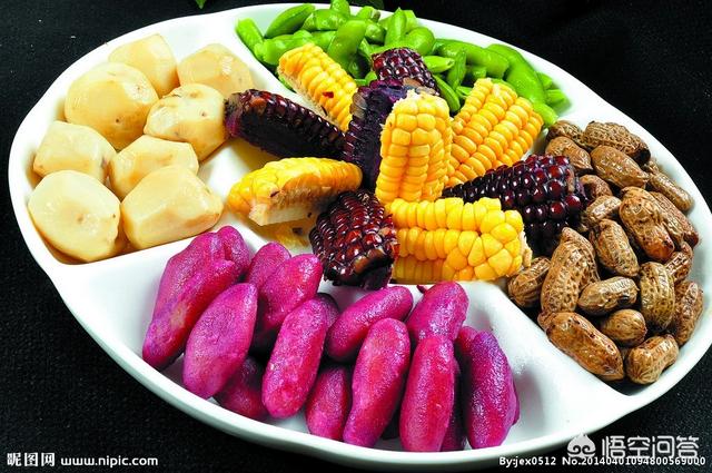 感谢邀请。五谷丰登寓意粮食大丰收。一般在酒店菜品当中作为一种风味。它的食材特别多样化。有铁杆山药、紫薯、玉米、花生、毛豆、南瓜、小土豆、大红枣、芋头等蒸熟装盘。配一小份白糖蘸食。酒店宴请宾朋。一桌大鱼大肉。必然少不了这五谷粗粮。有时在这高档宴会中也起到画龙点睛之笔