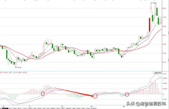 这段走势前面背离后比较顺利。上穿了0轴。上穿当天一般不是我的建仓点。是股价走强的信号。这里等上涨的力度。如果够强就会增加反转概率。