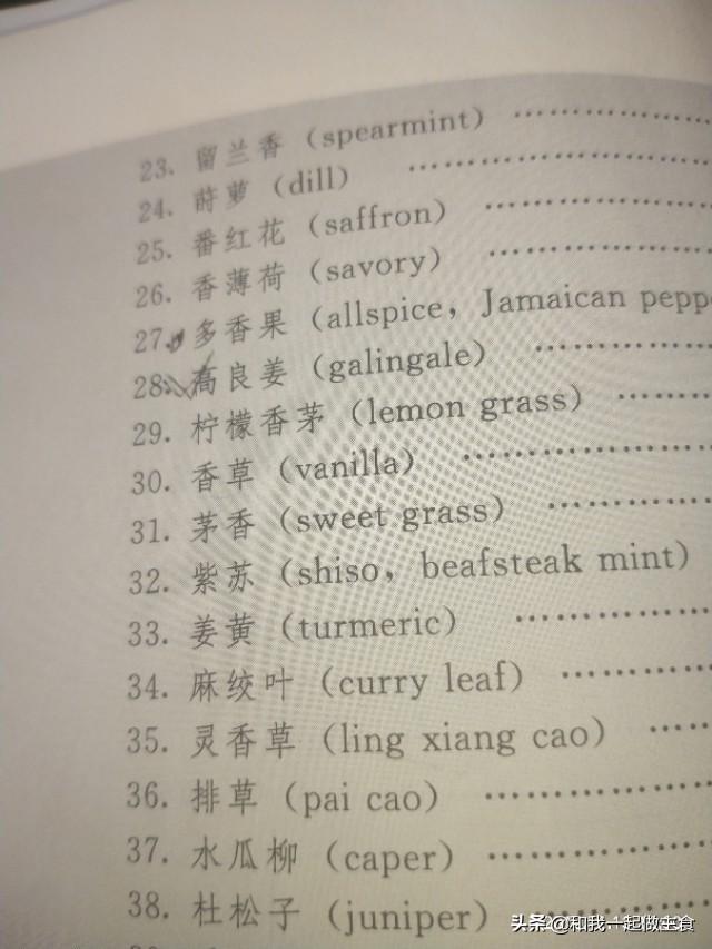 11、罗勒。别名千层塔。西餐中常用。既有丁香的芳香又有薄荷的清凉。有甜味和淡淡的辣味。去腥解腻。可用于意大利面或批萨酱。沙拉酱等。另外多用于做馅料、肉酱调料。与香叶、百里香配合使用。效果更佳。烹制海鲜原料时也会用到。可达到辟腥气的效果。罗勒是台湾“三杯鸡”中不可缺的香料。它不耐高温。需要即做即用。