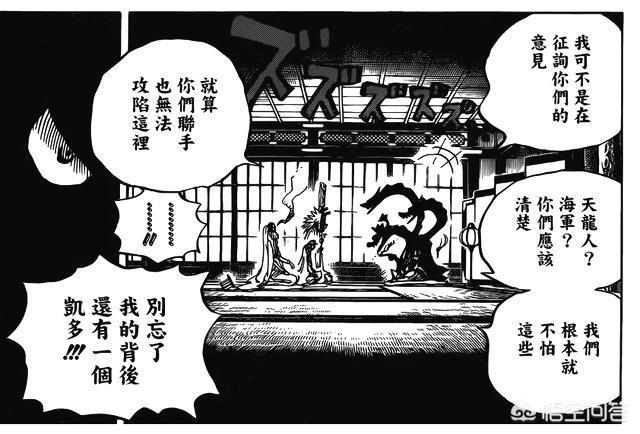 再加上和之国本身就有很强的战斗力。他觉得放眼整个世界。也没有那一股战力能对构成威胁。(路飞:你说什么?)