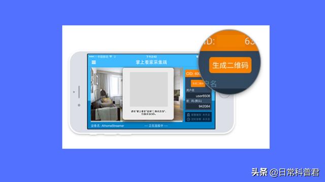 2、第二种添加方式是二维码添加。在旧手机的采集端软件上可以生成一个二维码。生成的二维码可以用新手机里的观看端软件去扫描。扫描成功后同样可以成功连接新旧手机的监控软件。