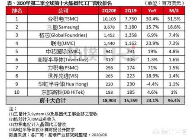 台积电在全球芯片代工领域内是非常强大的。市场份额达到了51.5%。竞争优势非常明显。2020年第二季度营收也达到了101亿美元。