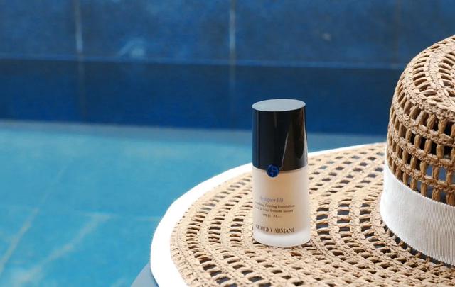 待我慢慢“说人话”——我们都知道。黄蓝在光学上是“互补色”。而随着年纪增长。尤其过了二十岁。我们肌肤能够反射蓝光的能力随着细胞的干瘪而锐减。因此我们皮肤也会显得暗黄不均。阿玛尼大师粉底液通过添加普鲁士蓝珍珠调光微粒。在视觉上补充了蓝光。与原本皮肤的黄光中和成白光。好像给皮肤打上了柔光灯。自然皮肤看起来更通透干净啦~