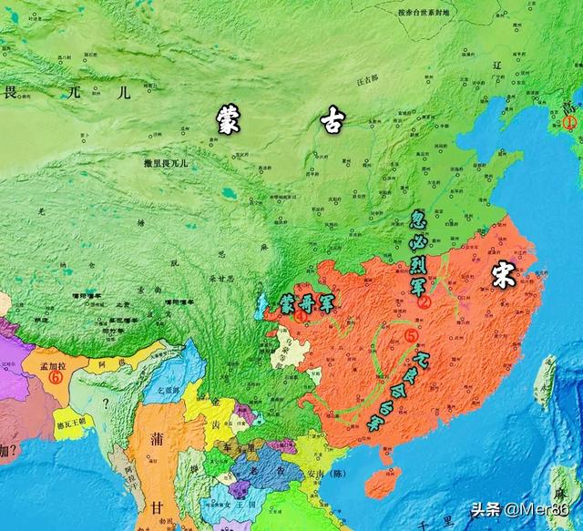 忽必烈和兀良合台相距最近时。距离也就几百里。差点就打穿了南宋的中部。