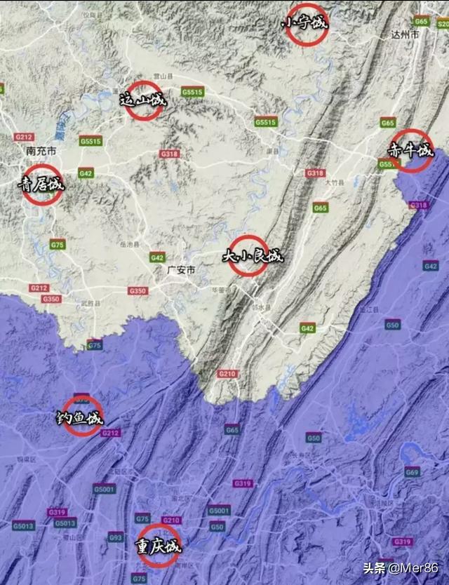 插一句。所谓山城防御体系。就是宋军在四川盆地内。沿江河或交通要道。选择险峻的山隘口筑城结寨。宋军可以依靠江河运输物资。使得各山寨互为声援。构成一完整的战略防御体系。后来打死蒙哥汗的钓鱼城。就是这套山城防御体系中。最核心和最为坚固的堡垒。
