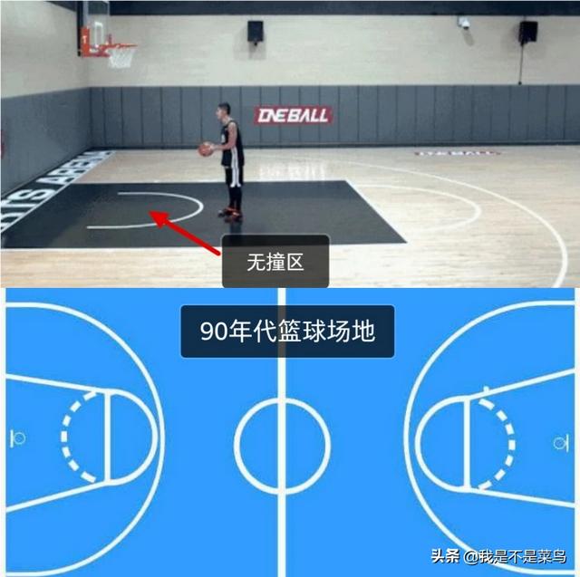 而樱木打球的阶段日本执行的是国际篮协的规则。还没有引入无撞人半圆区的规则(FIBA直到2010年才正式在比赛中加入了这一规则)因此下图的樱木在没有舞撞人半圆区规则的条件下身体已经和花型的圆柱体范围发生接触并且获利(把花型撞飞)。所以裁判才会判定樱木是进攻犯规。