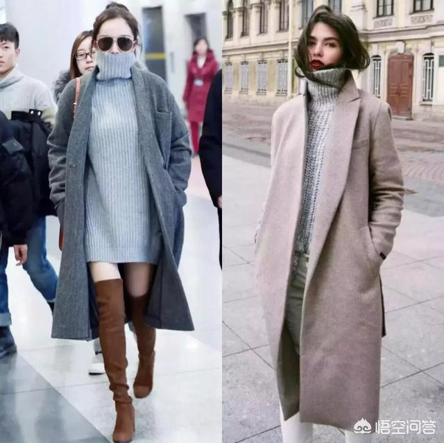 首先。毛衣和大衣都最好选择纯色。而且款式越简单越好。大衣可以选择长款。毛衣可以选择高领。那么很明显。效果就出来了。长款大衣内搭高领毛衣。嗯。连口罩都省了。尤其是内搭针织毛衣短裙。再踩一双长筒靴。显瘦有显高级。